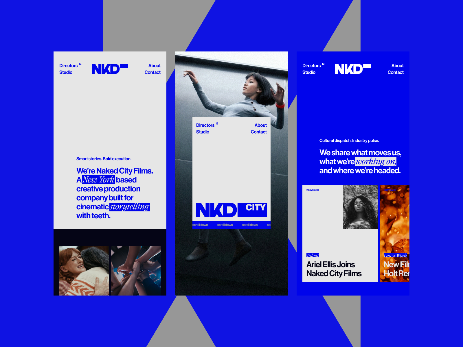 A vibrant website for Naked City Films, merging raw energy with editorial restraint to reflect a production company built on craft, curiosity, and storytelling.