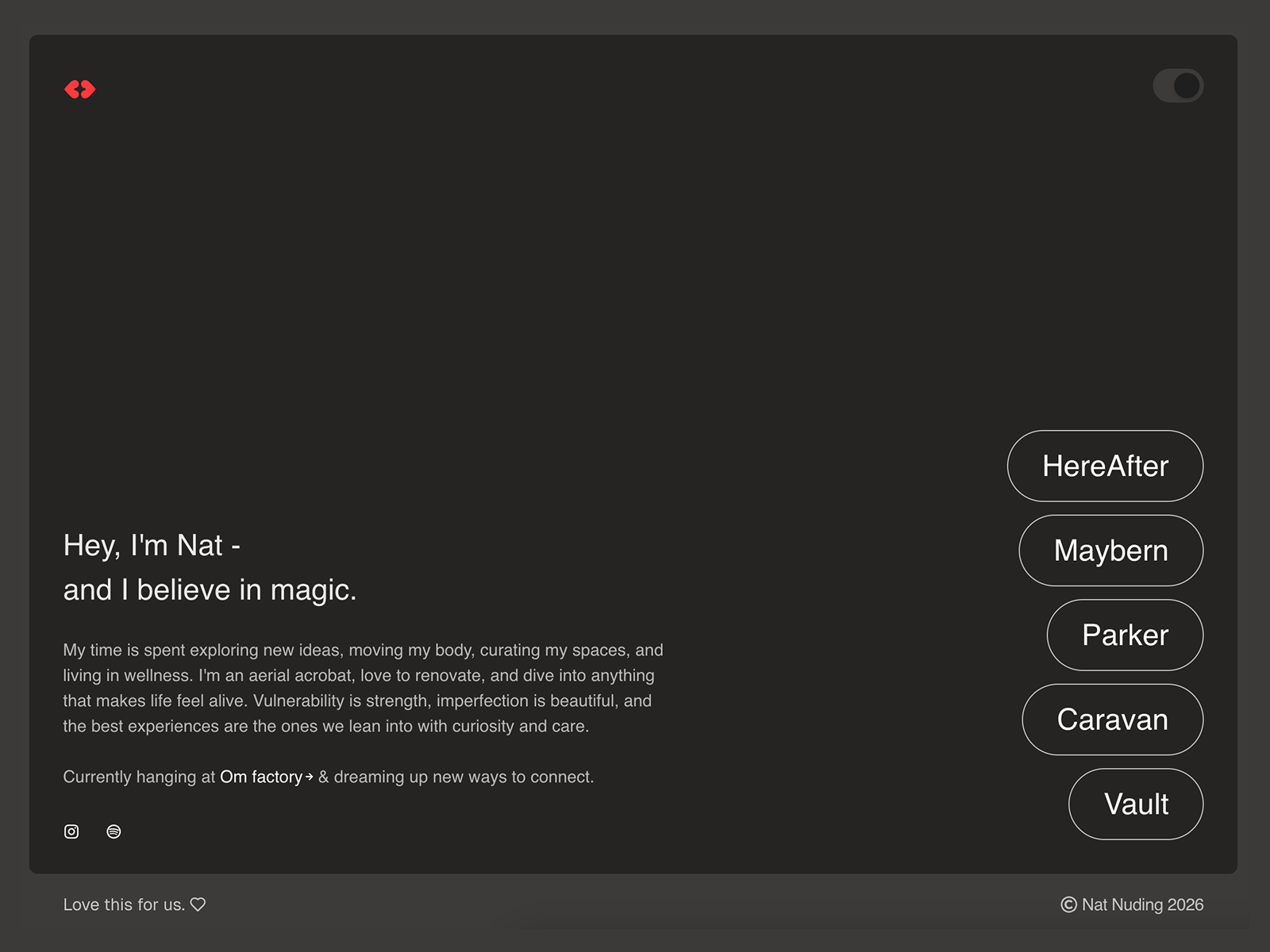This is my portfolio and also me. It shows the work I make as a designer but also the person I am, the curiosity, the play, the perspective that guides every choice.