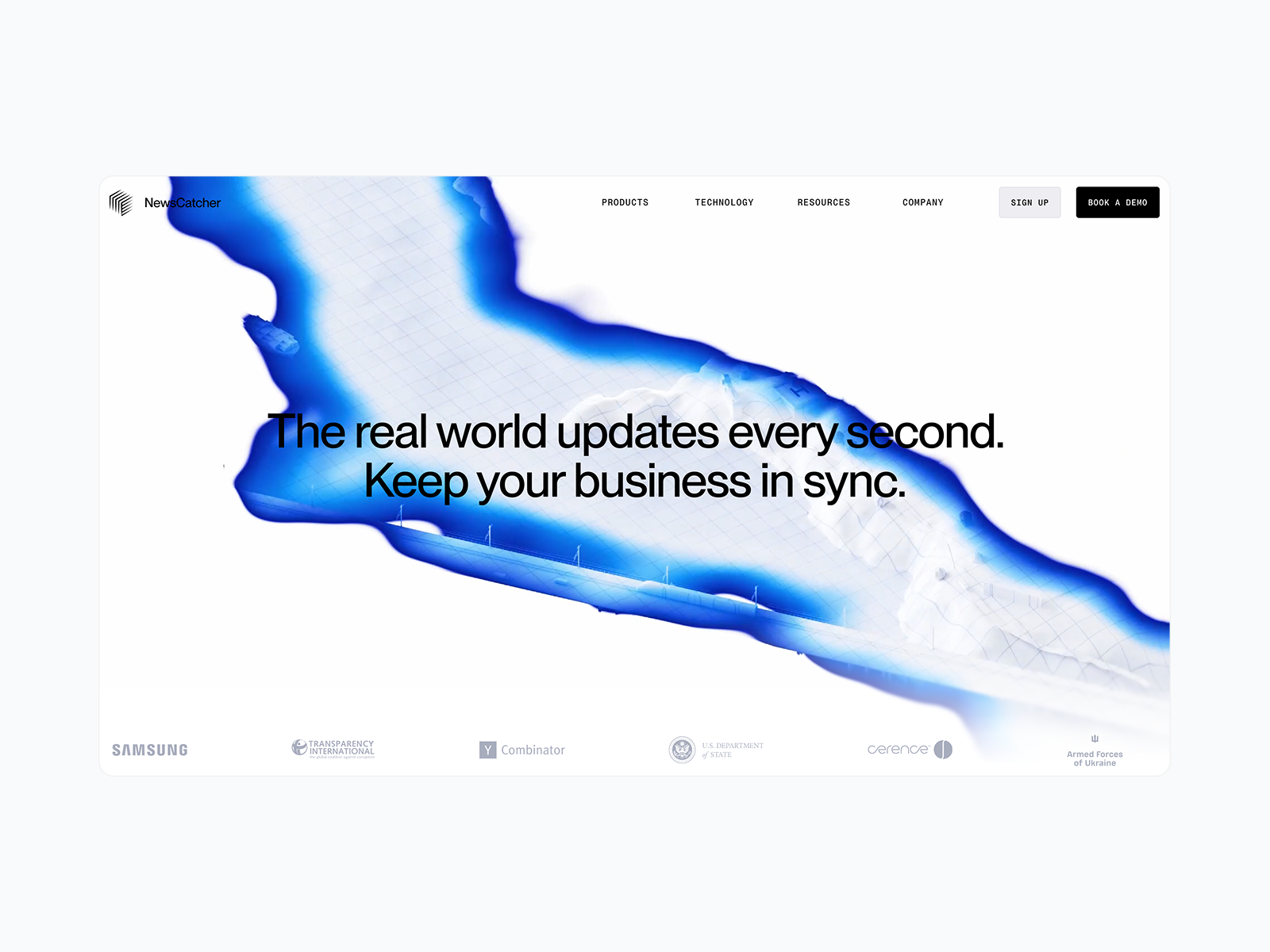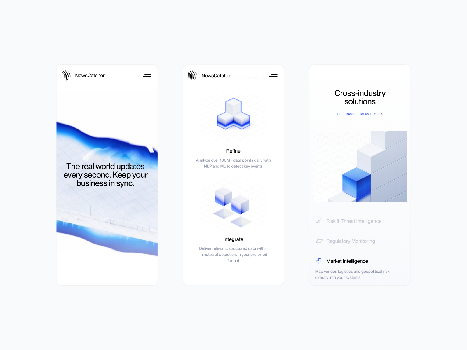 NewsCatcher turns billions of data points into trusted, real-time intelligence for smarter business decisions. It’s visualized as a scanner-like wave revealing insights and news.