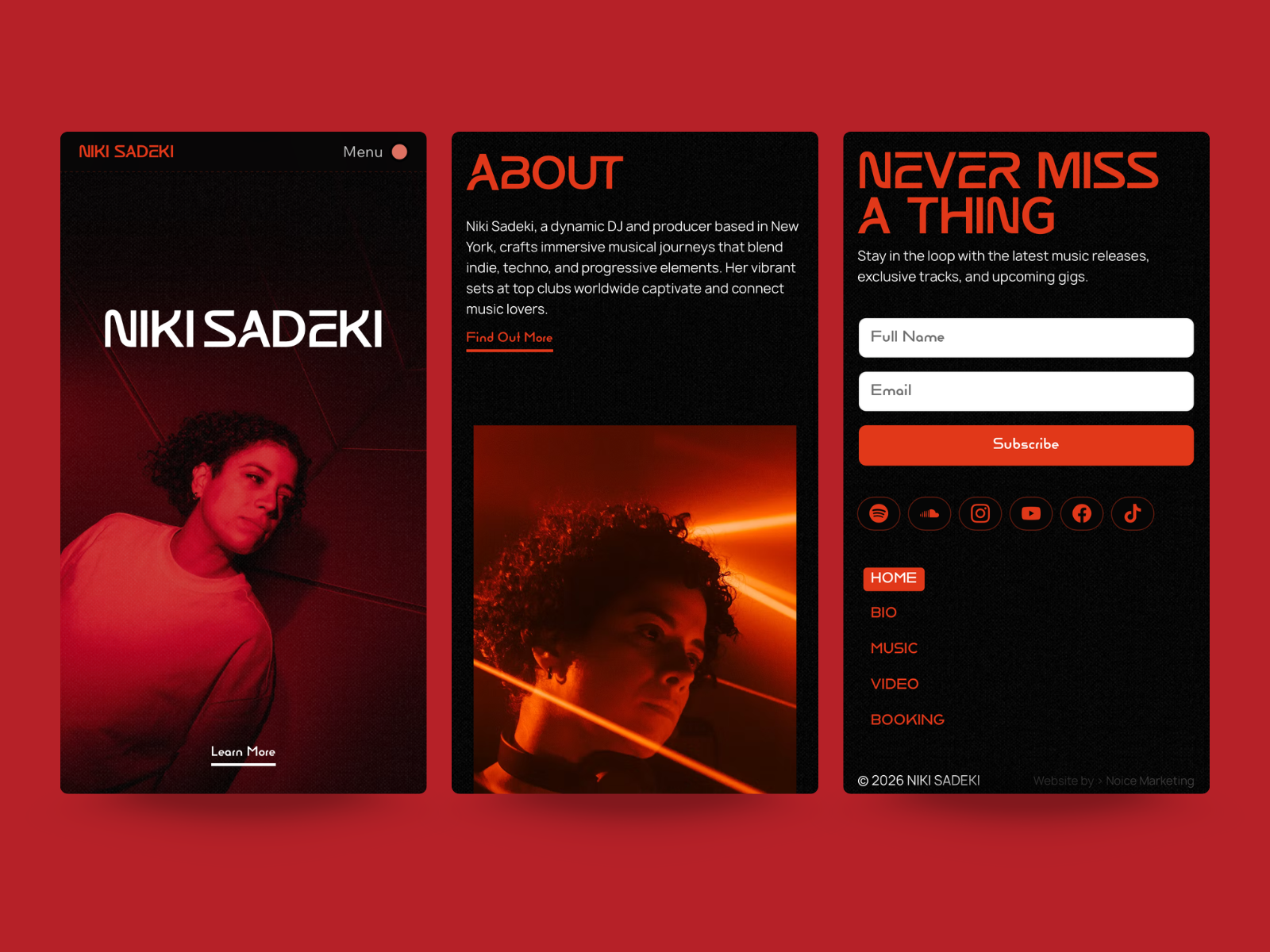 A minimalist, cinematic website built for DJ and producer Niki Sadeki, capturing the emotional narrative of her music through immersive visuals and interaction.