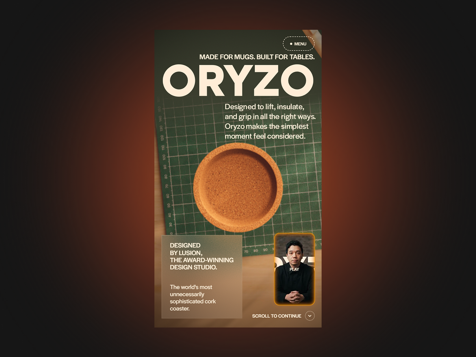 A cinematic product story that turns an ordinary cork coaster into an immersive digital experience through craft, detail, and interaction.