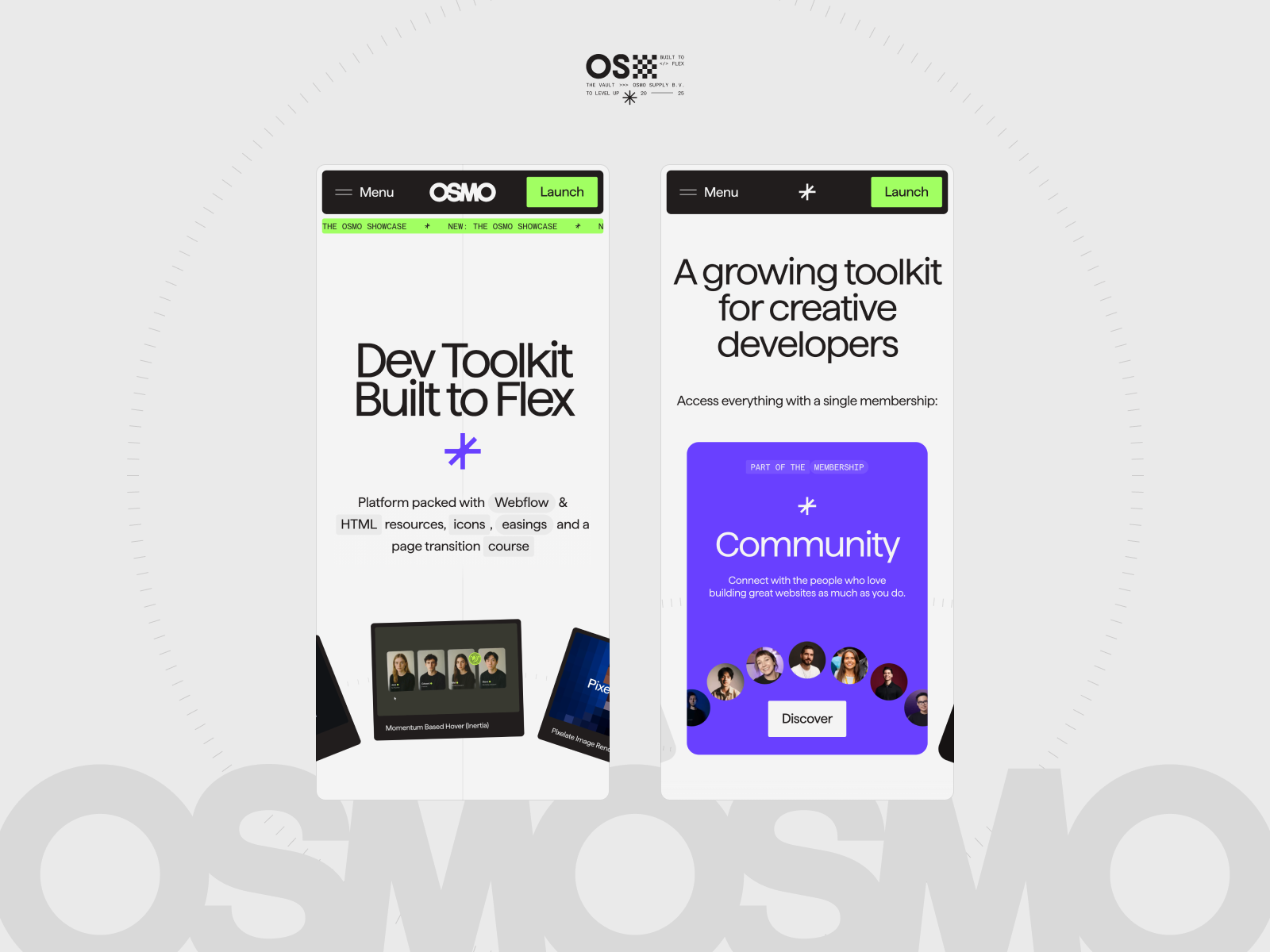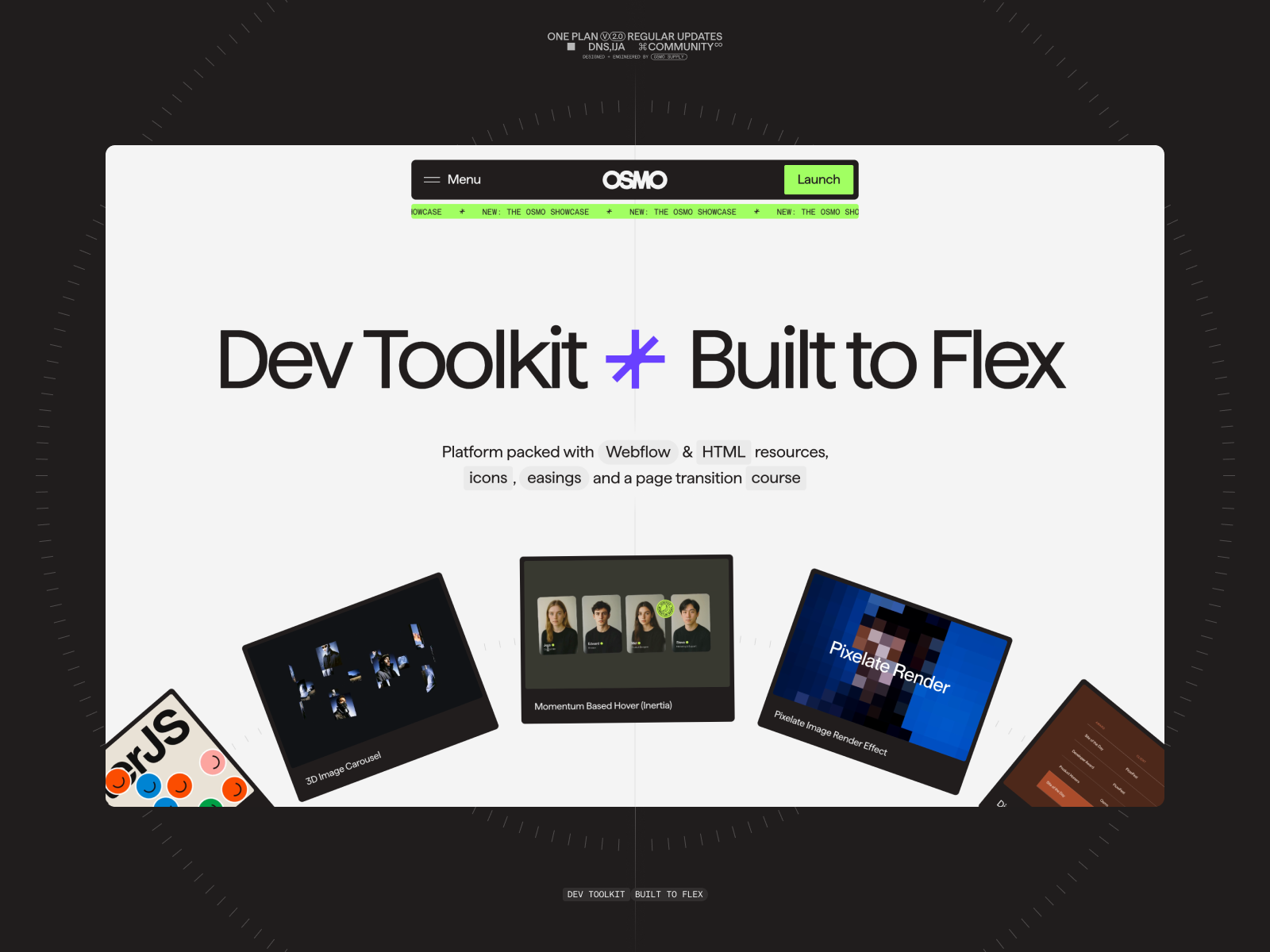 Dev Toolkit, Built to Flex. Osmo is an ever-growing platform with Webflow & HTML resources. Get exclusive access to the elements, techniques and code behind award-winning work.