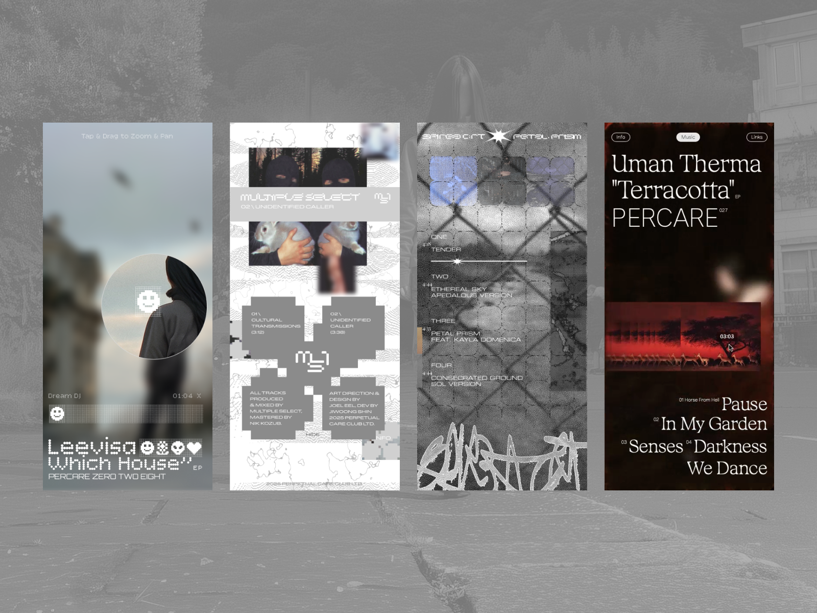 Series of music releases via Perpetual Care presented as mobile-first visualizers designed to encourage slower, more intentional listening for artists Leevisa, Uman Therma & Spirea Crt.