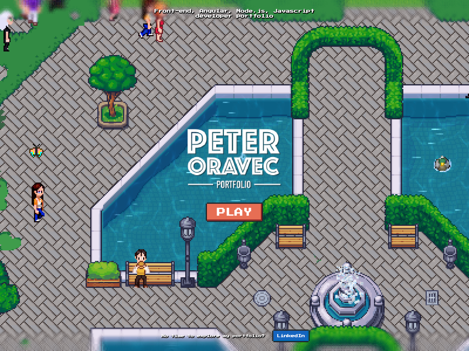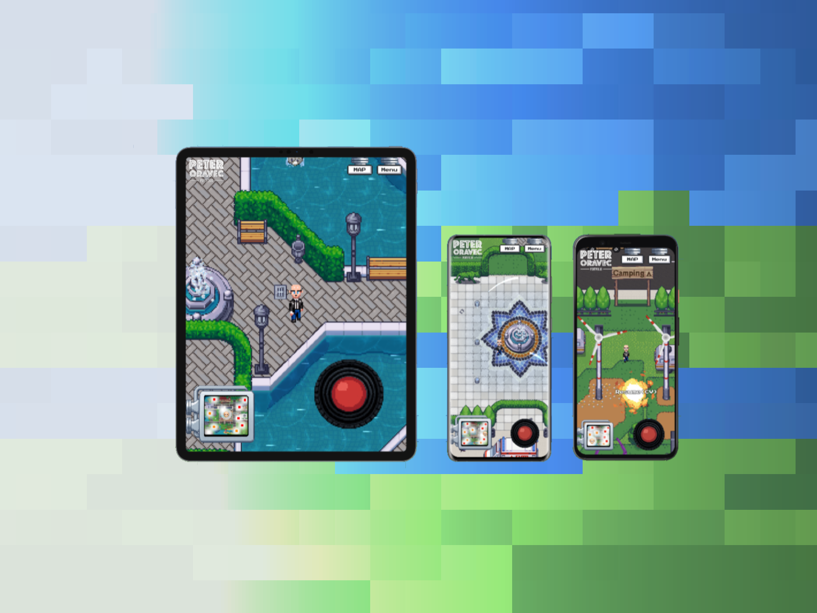 A developer portfolio reimagined as a pixel-art game. Control a character, explore an open world map and discover skills, work experience and projects through interactive gameplay.