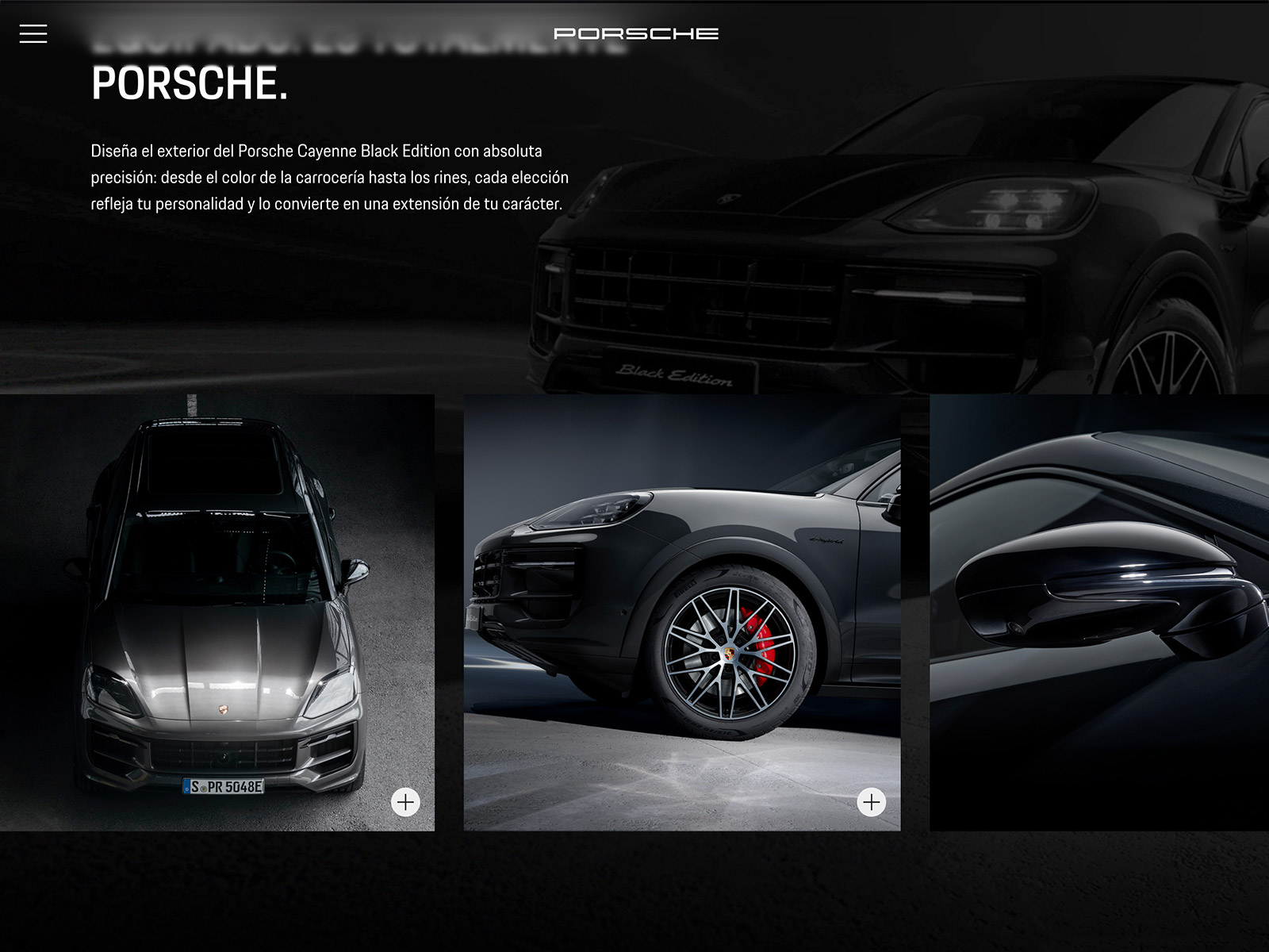 Discover the Porsche Cayenne Black Edition, where elegance meets power. Explore every detail and exclusive equipment on a website crafted for five Latin American countries.