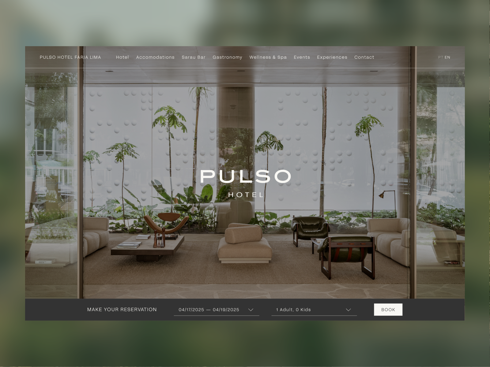 Pulso Hotel is the premier luxury hotel in São Paulo, Brazil. The website extends the hotel experience into a digital space where design, art, technology, and hospitality converge.