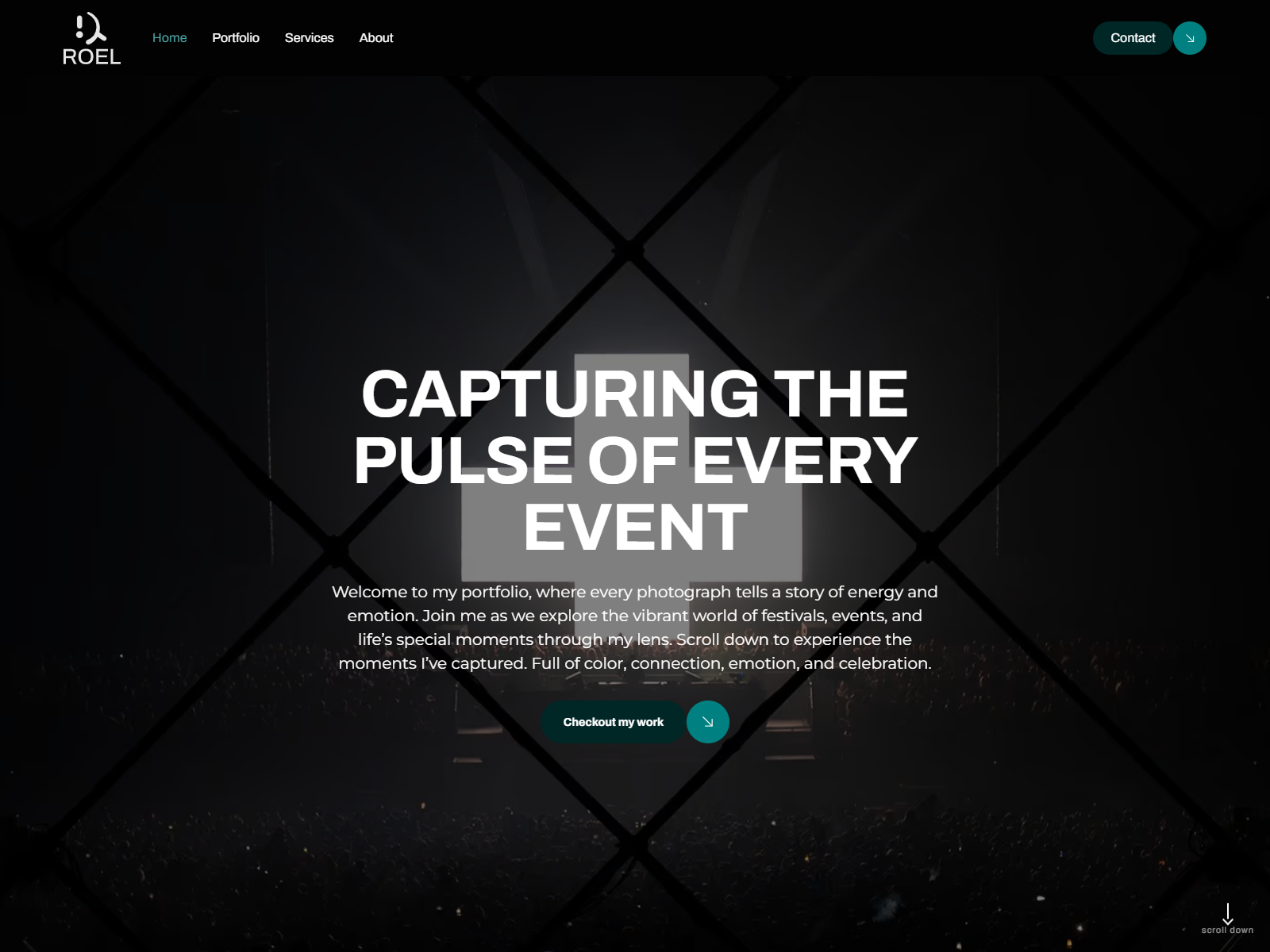 A visually immersive portfolio where subtle animations and fullscreen photography guide visitors into Roel’s energetic world of festivals, events, and storytelling.