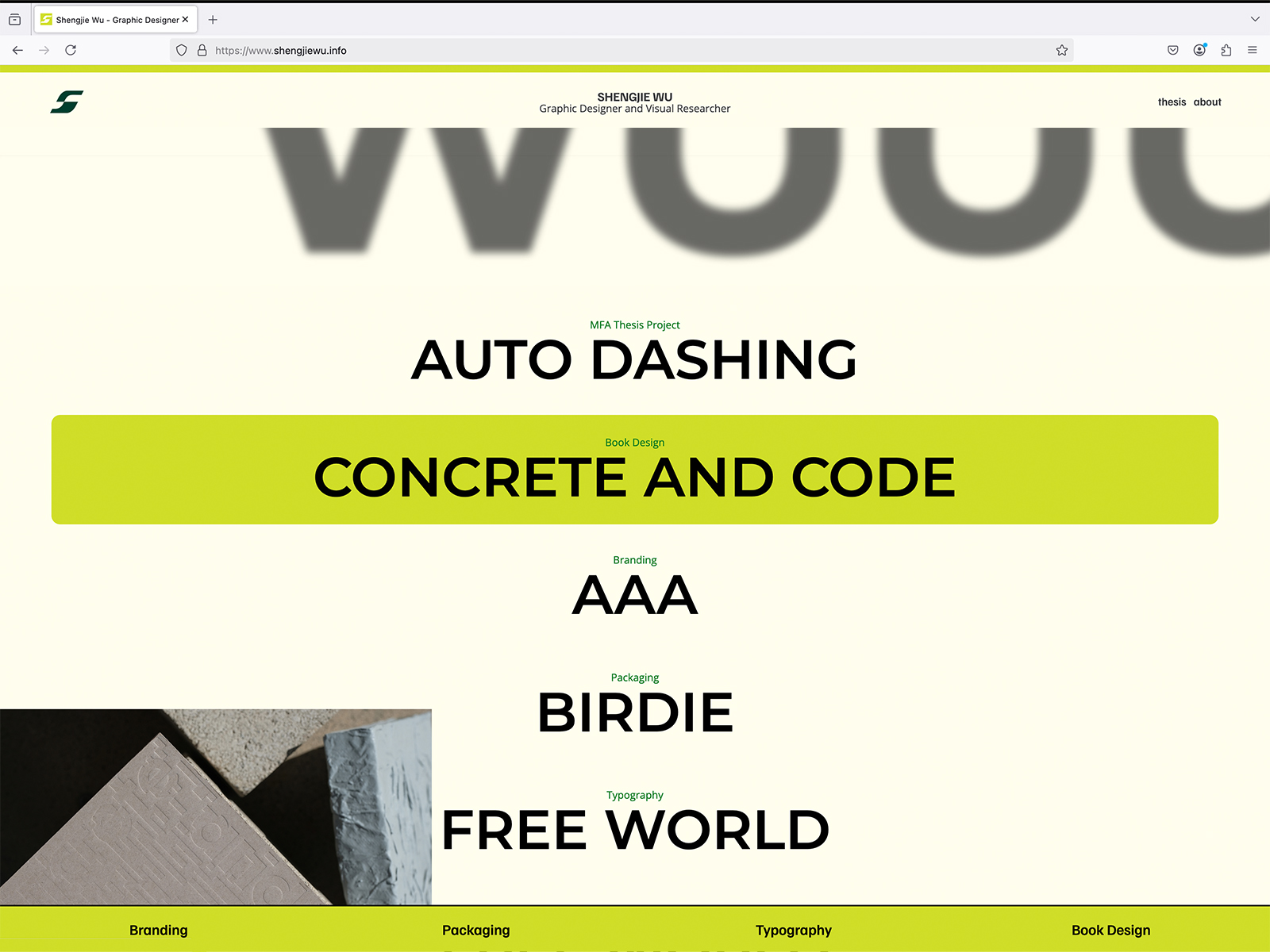 A visual portfolio presenting Shengjie Wu’s creative journey in branding, editorial, and typographic design, shaped by a research-driven and storytelling-focused perspective.