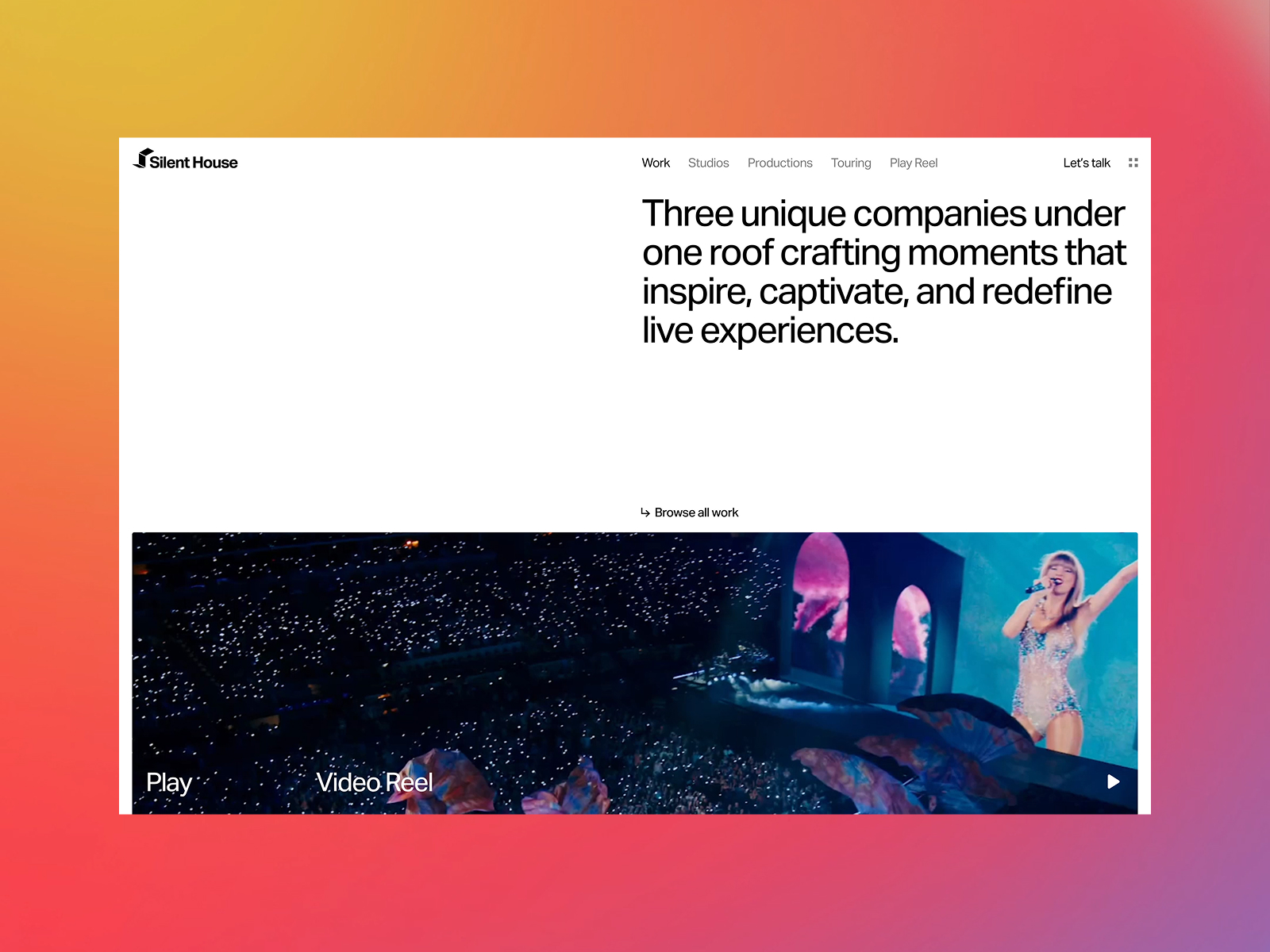Silent House is a global award-winning production and design firm behind some of the world’s biggest live experiences, broadcasts, and tours, working with artists and brands.