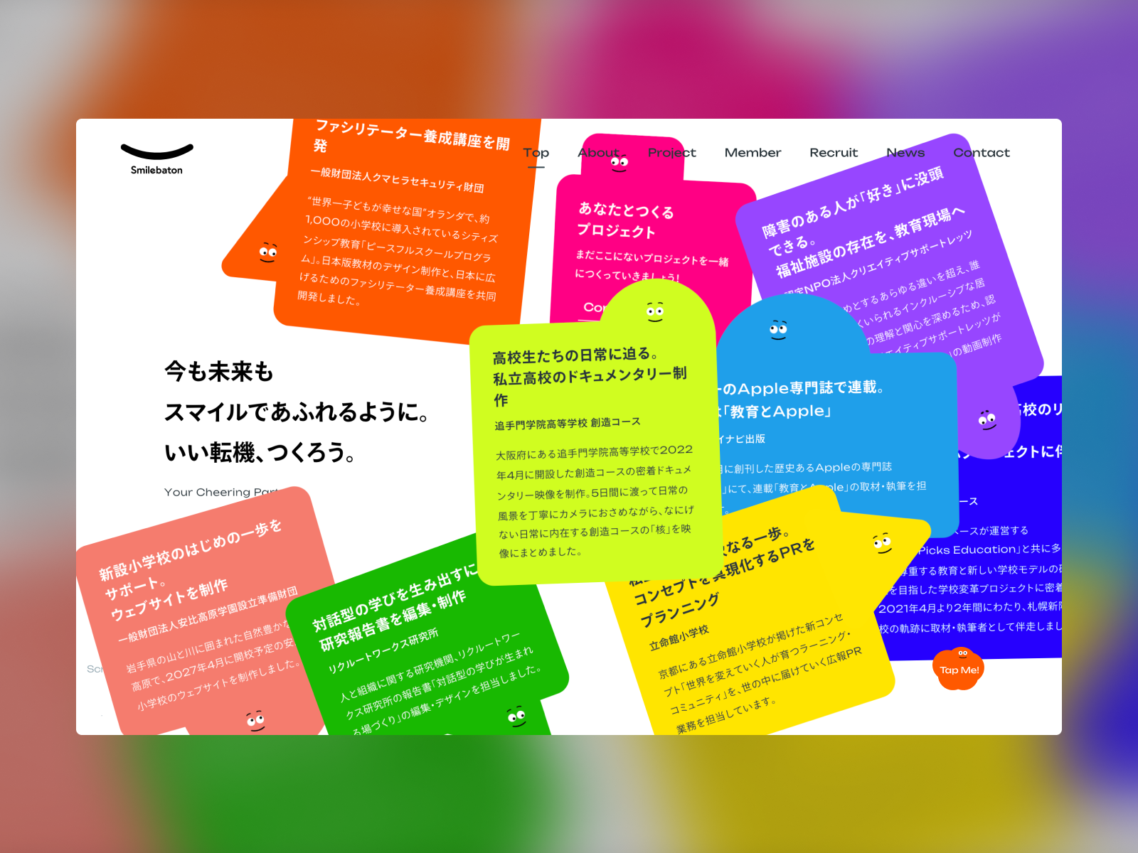 This is the website of Smilebaton Inc., an organization engaged mainly in education-related activities such as creating communities and publishing magazines.