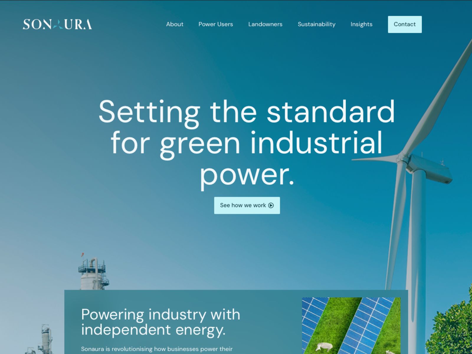 Transformed Sonaura’s website to clearly segment audiences and showcase renewable energy expertise, driving better enquiries and client understanding.