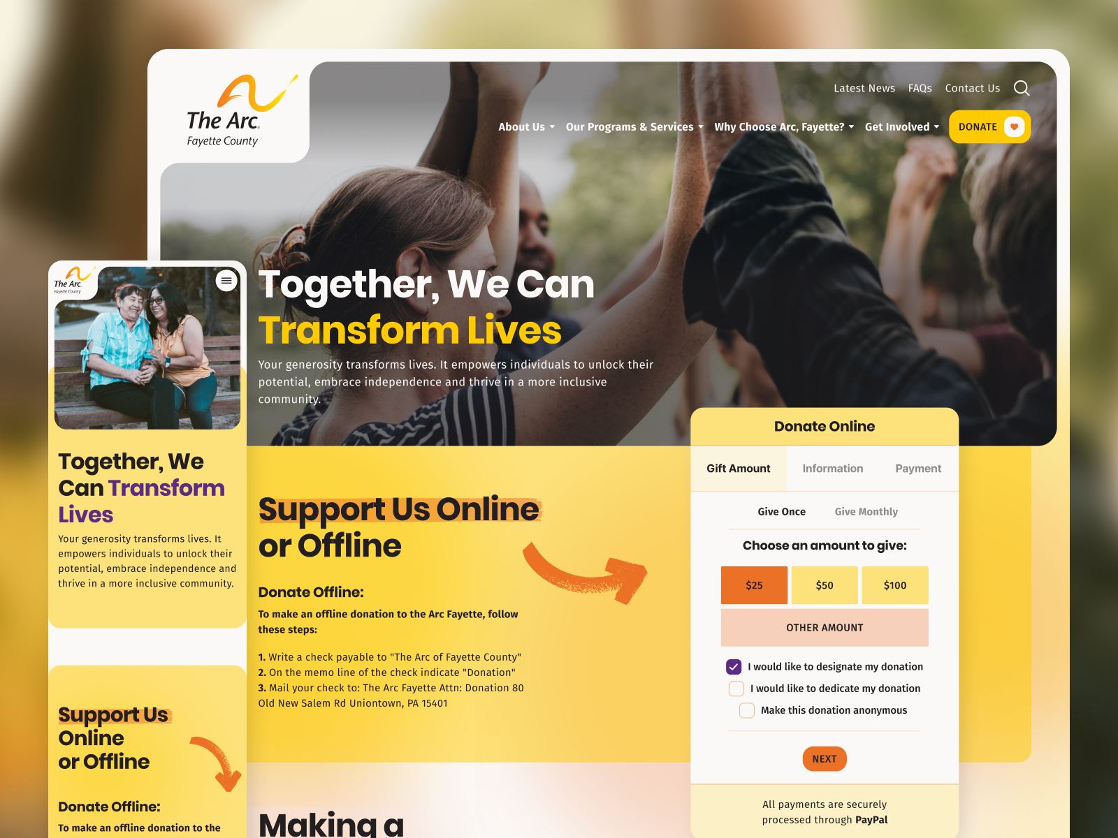 We redesigned The Arc Fayette’s site to clearly showcase its mission, creating an accessible, welcoming experience that helps users find support, get involved, and feel inspired.
