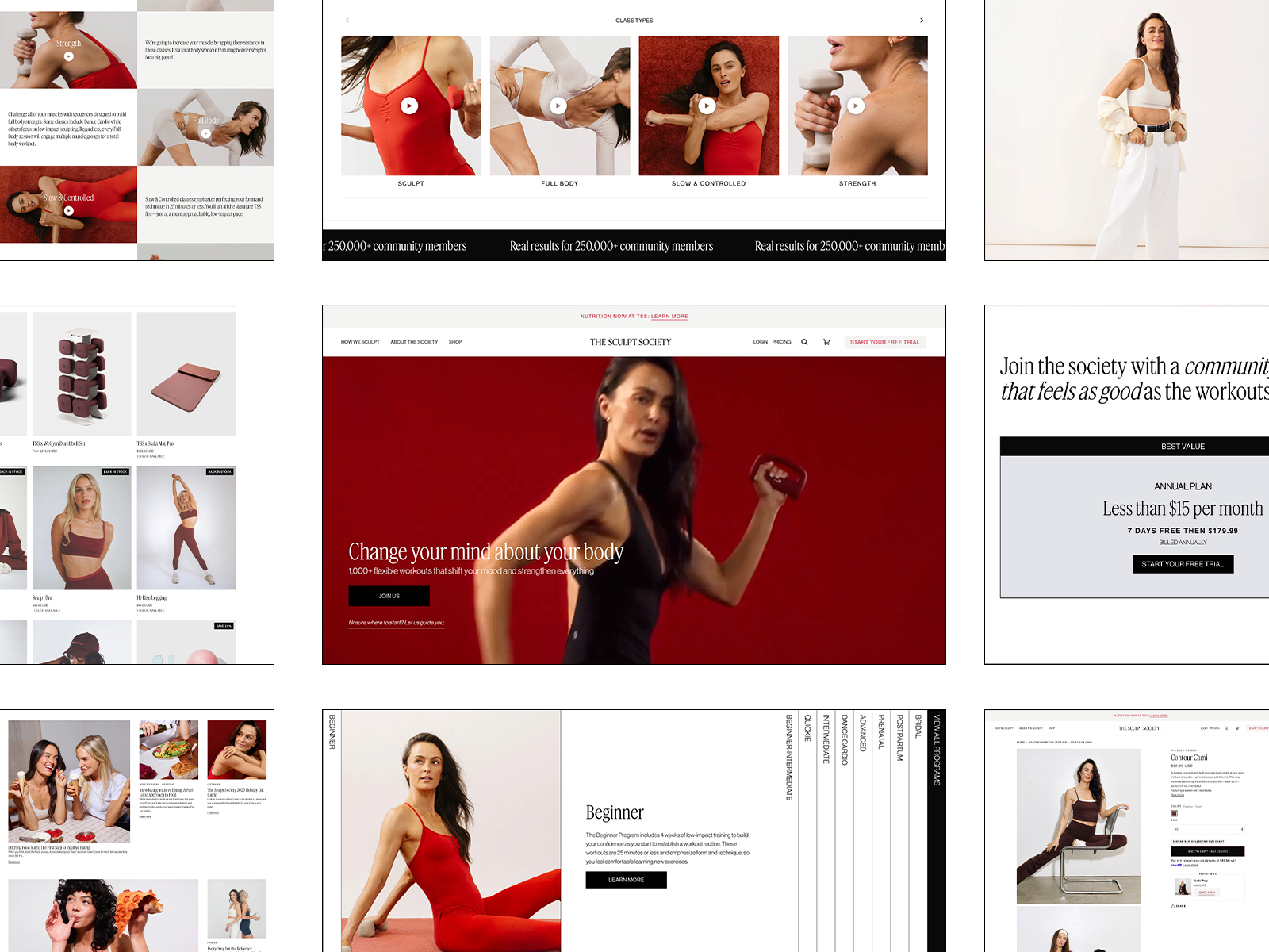 Phase 2 rebuild of The Sculpt Society’s platform, aligning their on-demand app and ecommerce experience through refined UX, editorial structure, and scalable content architecture.