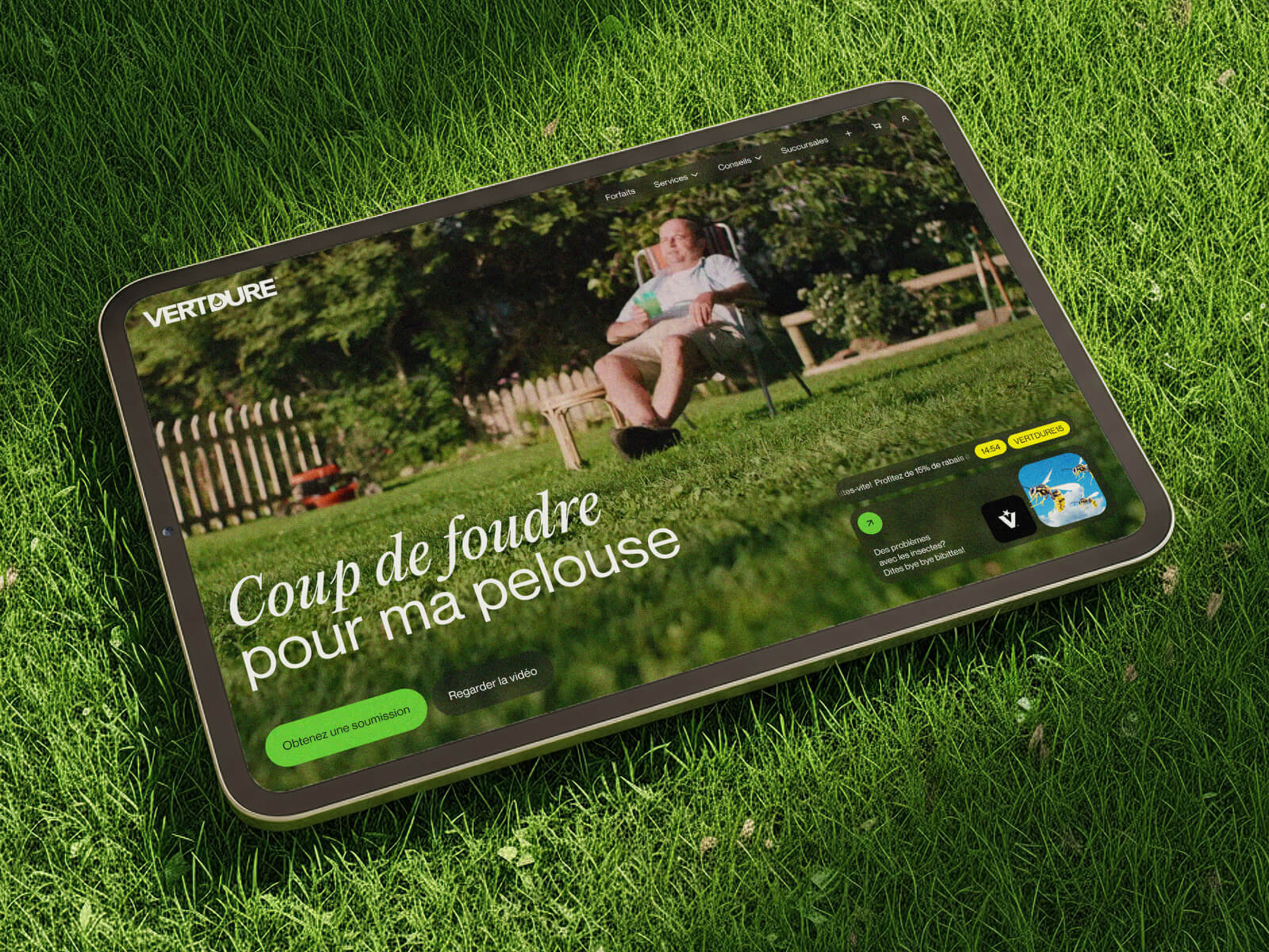 A bold, nature-inspired web design featuring a flexible bento grid, vibrant colors, friendly typography, and playful micro-interactions that make lawn care feel lovable.