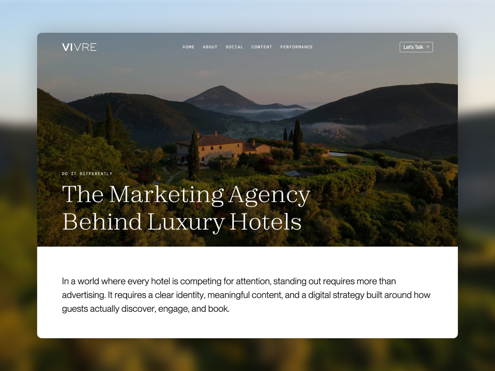 Vivre is the hospitality marketing agency behind some of the world's most followed hotels, working with iconic luxury properties across Europe.