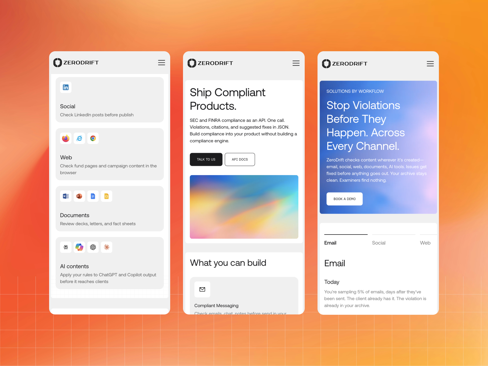 ZeroDrift is an AI compliance firewall that validates, fixes, and enforces policy across enterprise communications before content goes live.